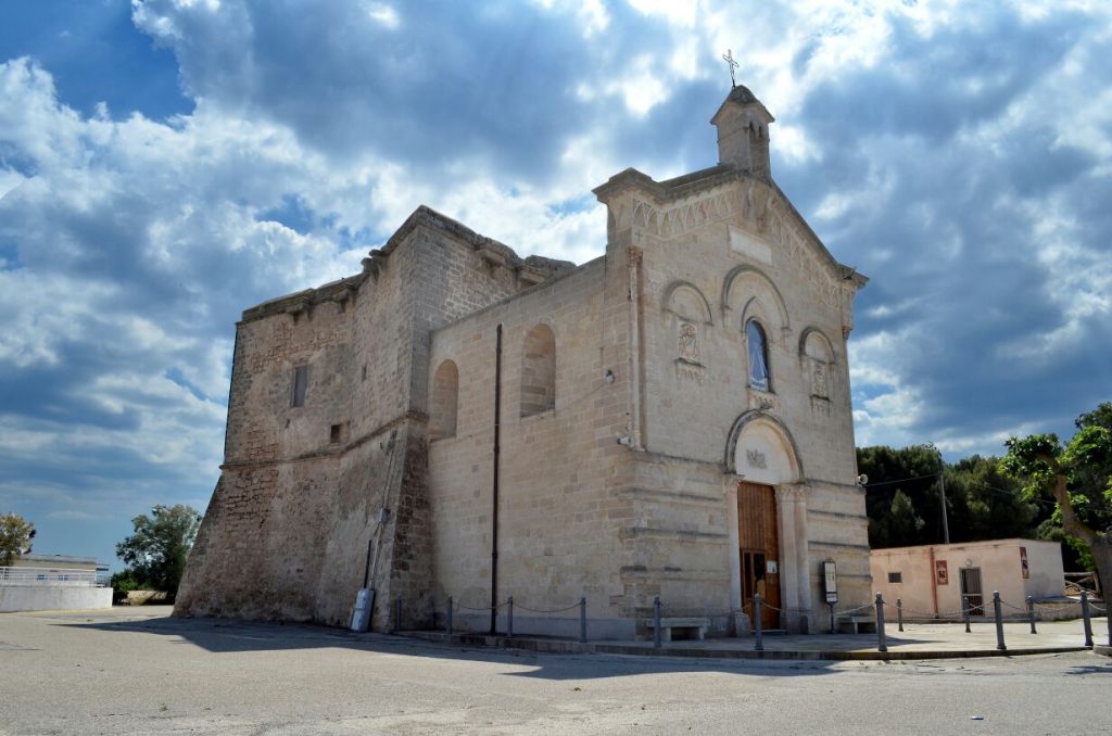 La Chiesa di San Pietro in Bevagna è una basilica dai caratteri neogotici, incastonata nella Torre medioevale. La chiesa fu edificata per proteggere le reliquie di San Pietro. L’edificio infatti sorge nel luogo in cui si narra sbarcò l’apostolo Pietro nel I sec. d.C. Durante gli scavi archeologici eseguiti nel 2004 furono portati alla luce sepolture di epoca bizantina e reperti numismatici che fanno supporre l’esistenza, di una precedente cripta ipogeica sotto l’attuale edificio realizzato tra la fine del quattrocento e metà del cinquecento dai monaci benedettini dell’Abbazia di San Lorenzo di Aversa ai quali, fu donata la torre nel 1092, da Ruggero d’Altavilla. L’altare è ricavato nello zoccolo della torre.L’interno è semplice ad una unica navata, mentre l’esterno presenta sopra la lunetta del portale uno stemma papale in bassorilievo, una finestra istoriata,due stemmi posti lateralmente a bassorilievo, e un piccolo campanile a vela sulla facciata laterale.